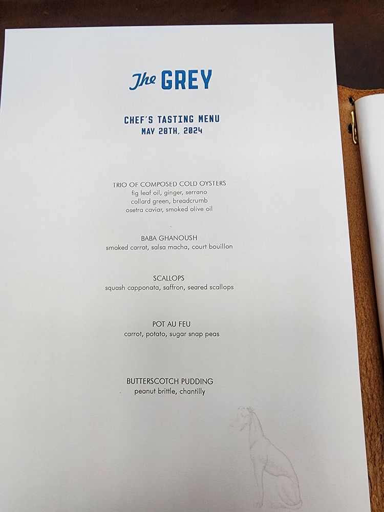 The Grey in Savannah, GA, offers an exquisite New American cuisine experience. Located in a beautifully restored Greyhound bus depot, the restaurant boasts a classy ambiance and exceptional service. The menu is carefully curated, with options for vegans and vegetarians. Customers rave about the corn fritters, pork shoulder, and butterscotch pudding. The Chef's Tasting menu is a standout, featuring creative dishes like composed cold oysters and Baba Ghanoush with smoked carrot. The staff is accommodating, making modifications for dietary restrictions. The Grey is perfect for intimate dinners or special occasions, with private party rooms available. With a full bar, outdoor seating, and plastic-free packaging, The Grey offers a unique and memorable dining experience for those looking to indulge in eclectic cuisine.